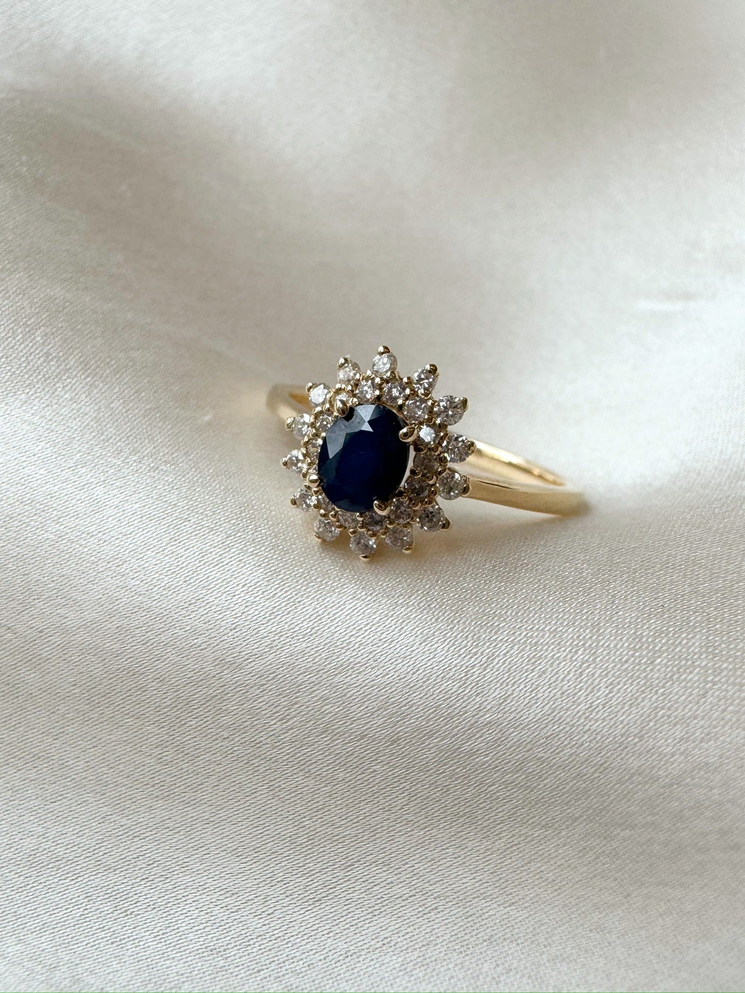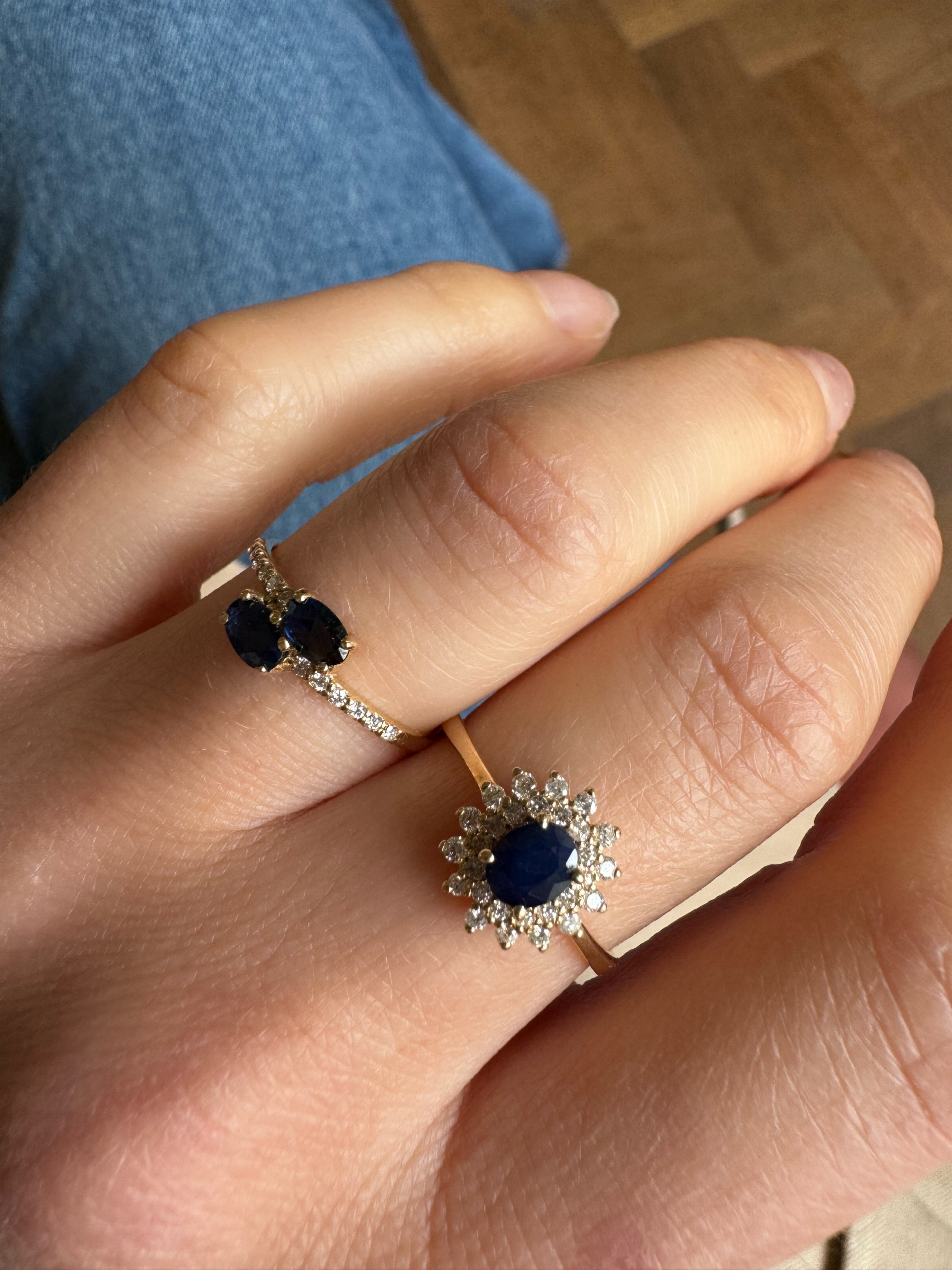 De 'Alix' ring straalt verfijning en elegantie uit, en de diepe blauwe kleur van de saffier geeft hem een klassieke uitstraling. Saffier is een waardevolle edelsteen die staat voor wijsheid, royalty en spirituele groei. Het wordt vaak gezien als een steen van bescherming en innerlijke vrede. Of je nu op zoek bent naar een tijdloze ring, een verfijnde verlovingsring of een elegant geschenk aan jezelf, deze ring is absoluut een bijzondere toevoeging aan je juwelencollectie.