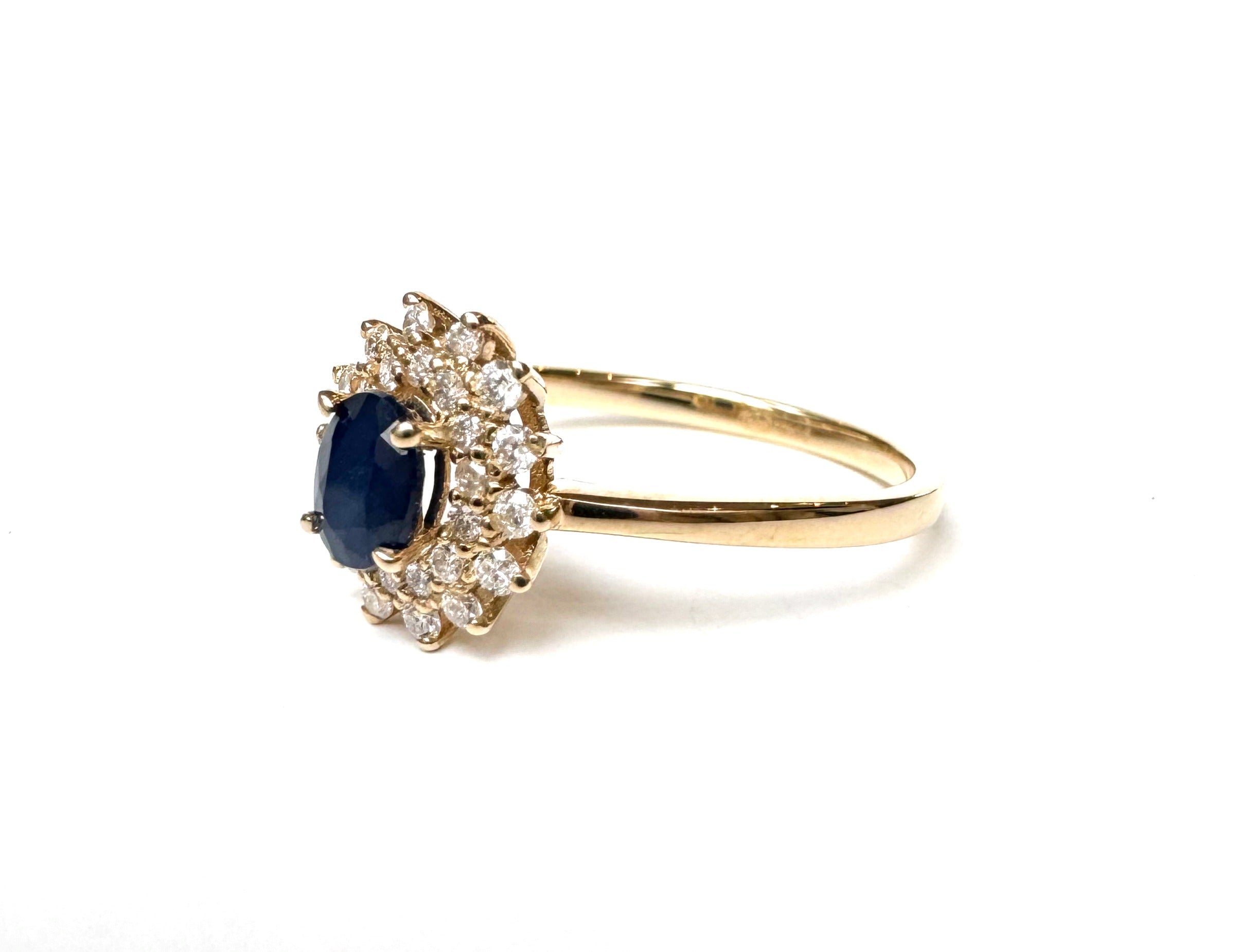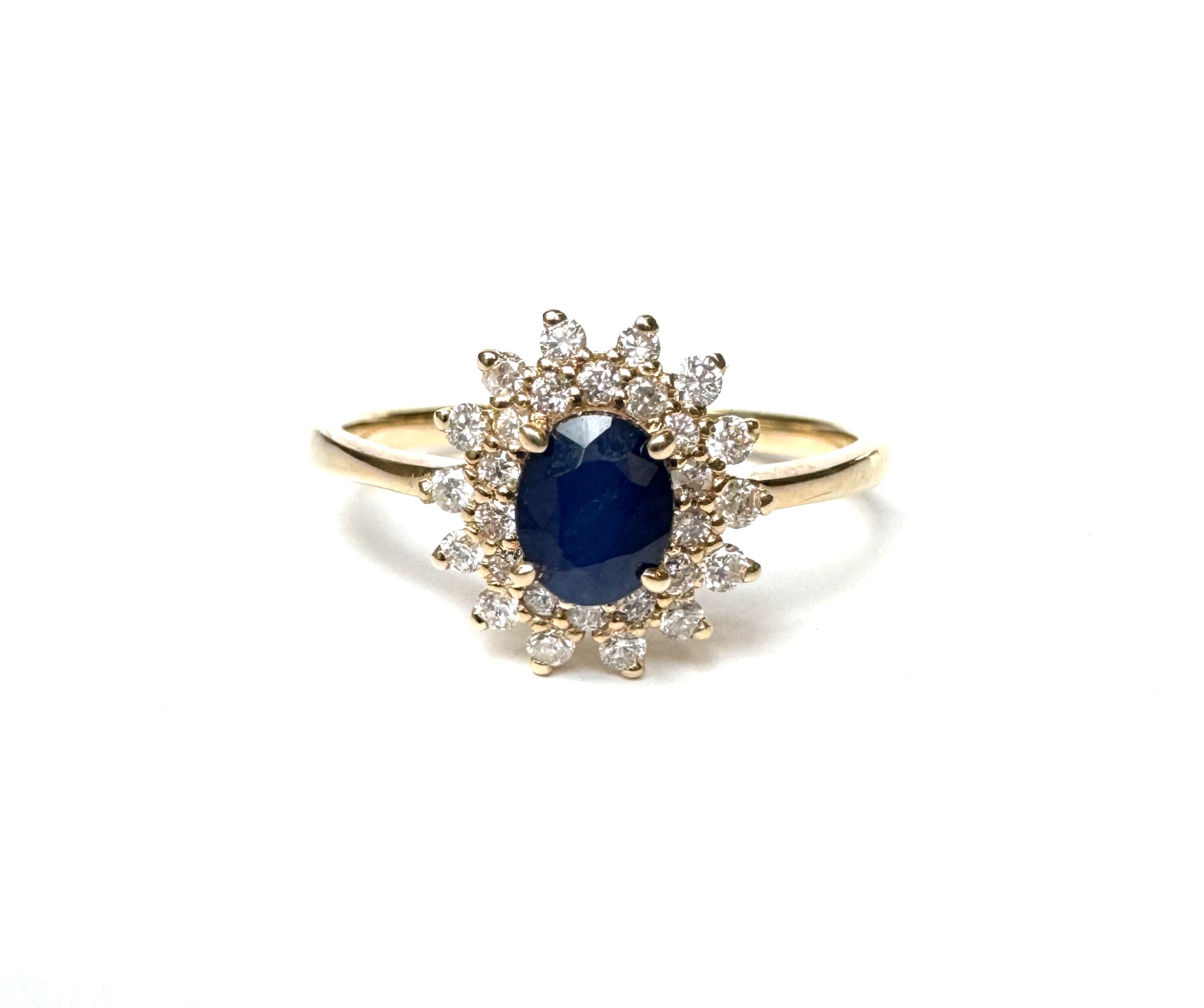 Deze ring genaamd 'Alix' behoort tot onze Exclusieve Dufay collectie. Elk stuk in deze unieke collectie draagt zijn eigen charme en is met liefde en vakmanschap gemaakt. De ring is vervaardigd van 14 karaat geelgoud met in het midden een prachtige saffier, omringd door schitterende diamanten.