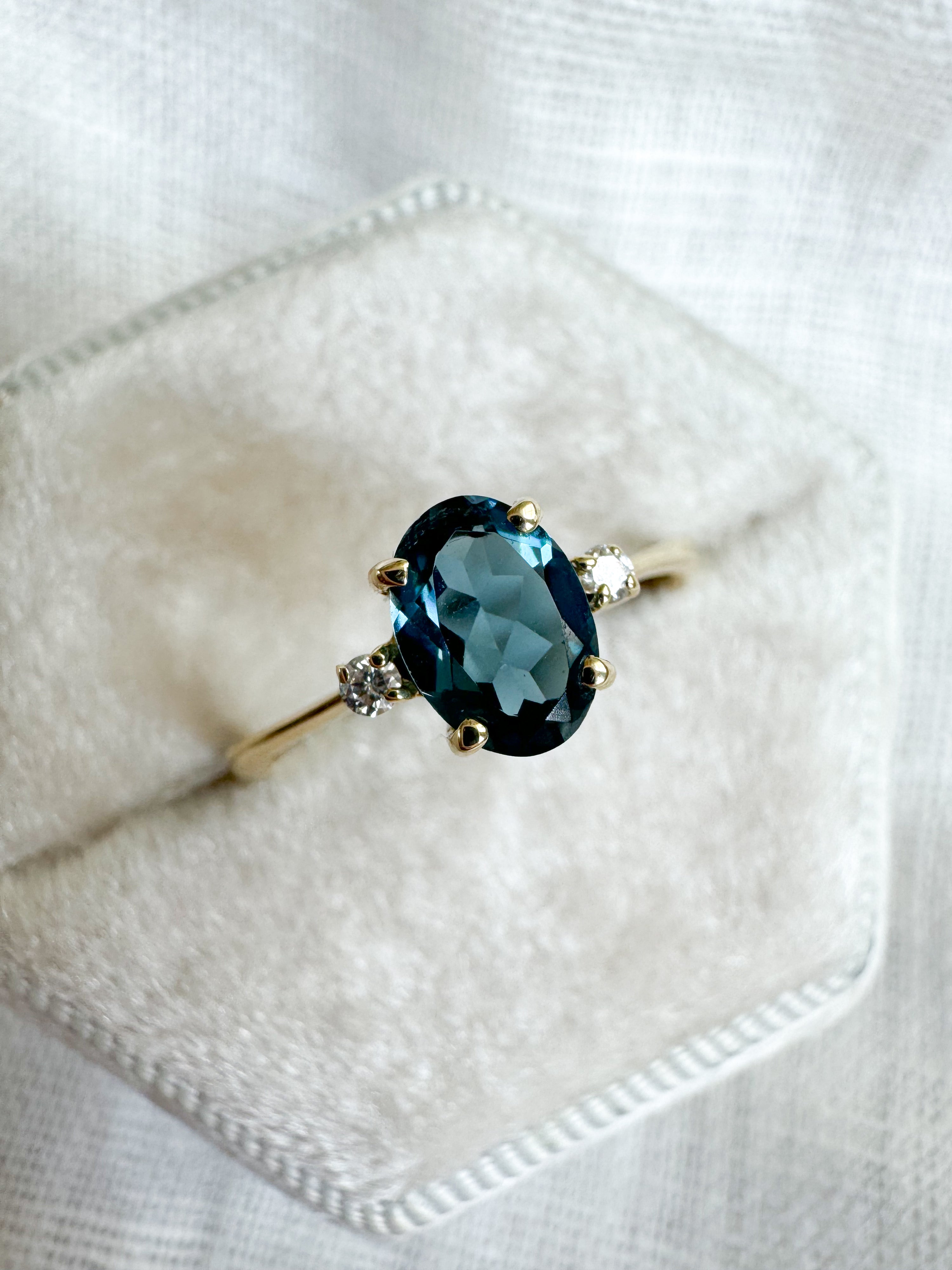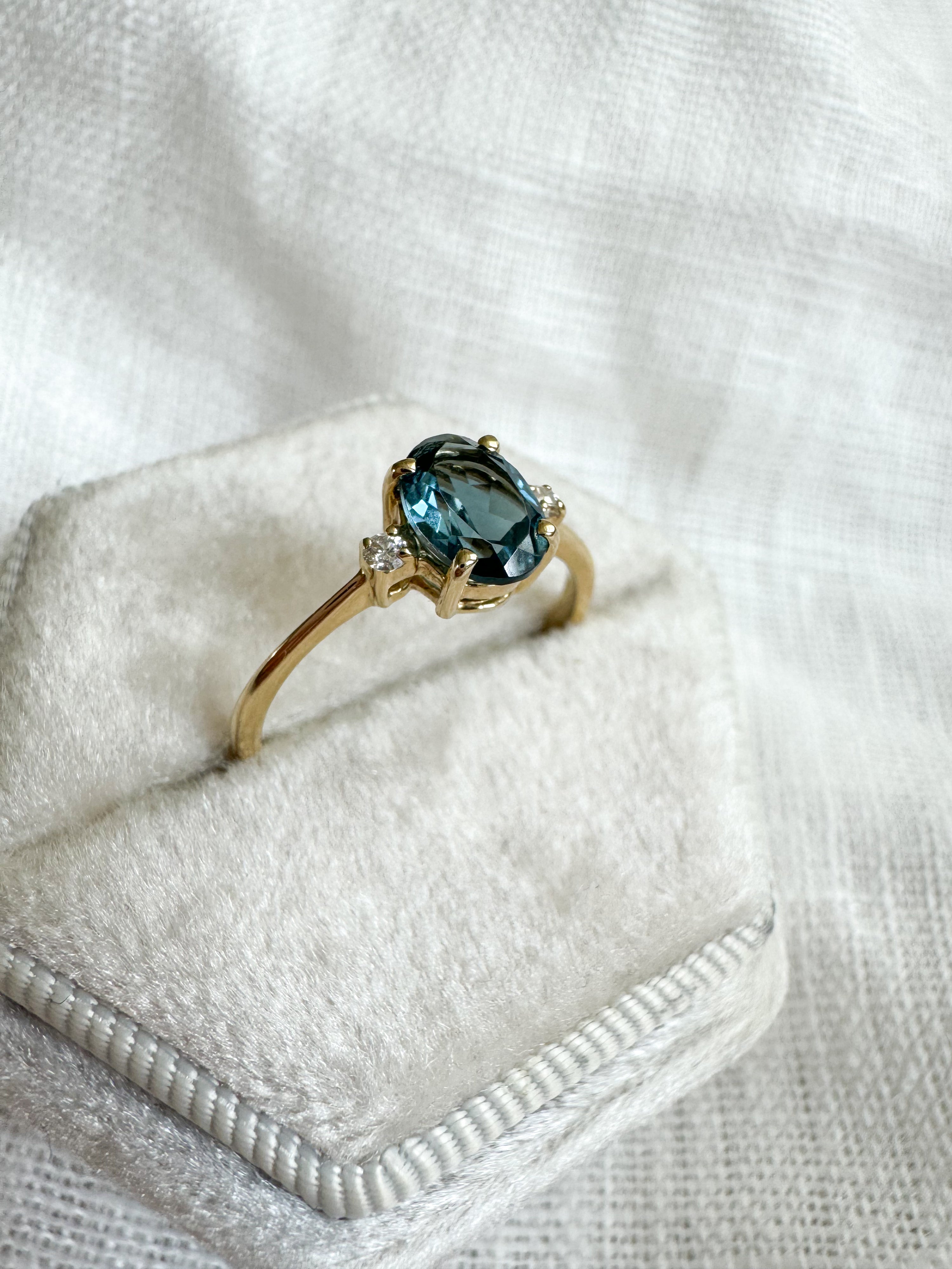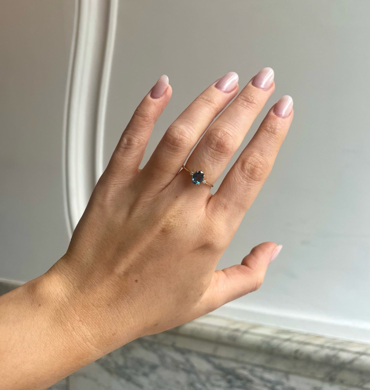 Deze prachtige klassieke ring straalt verfijning en elegantie uit. De blauwe topaas staat traditioneel bekend als de steen die geluk, voorspoed en liefde bevordert. Of je nu op zoek bent naar een tijdloze ring, een verfijnde verlovingsring of een elegant geschenk aan jezelf, deze ring is absoluut een bijzondere toevoeging aan je juwelencollectie.