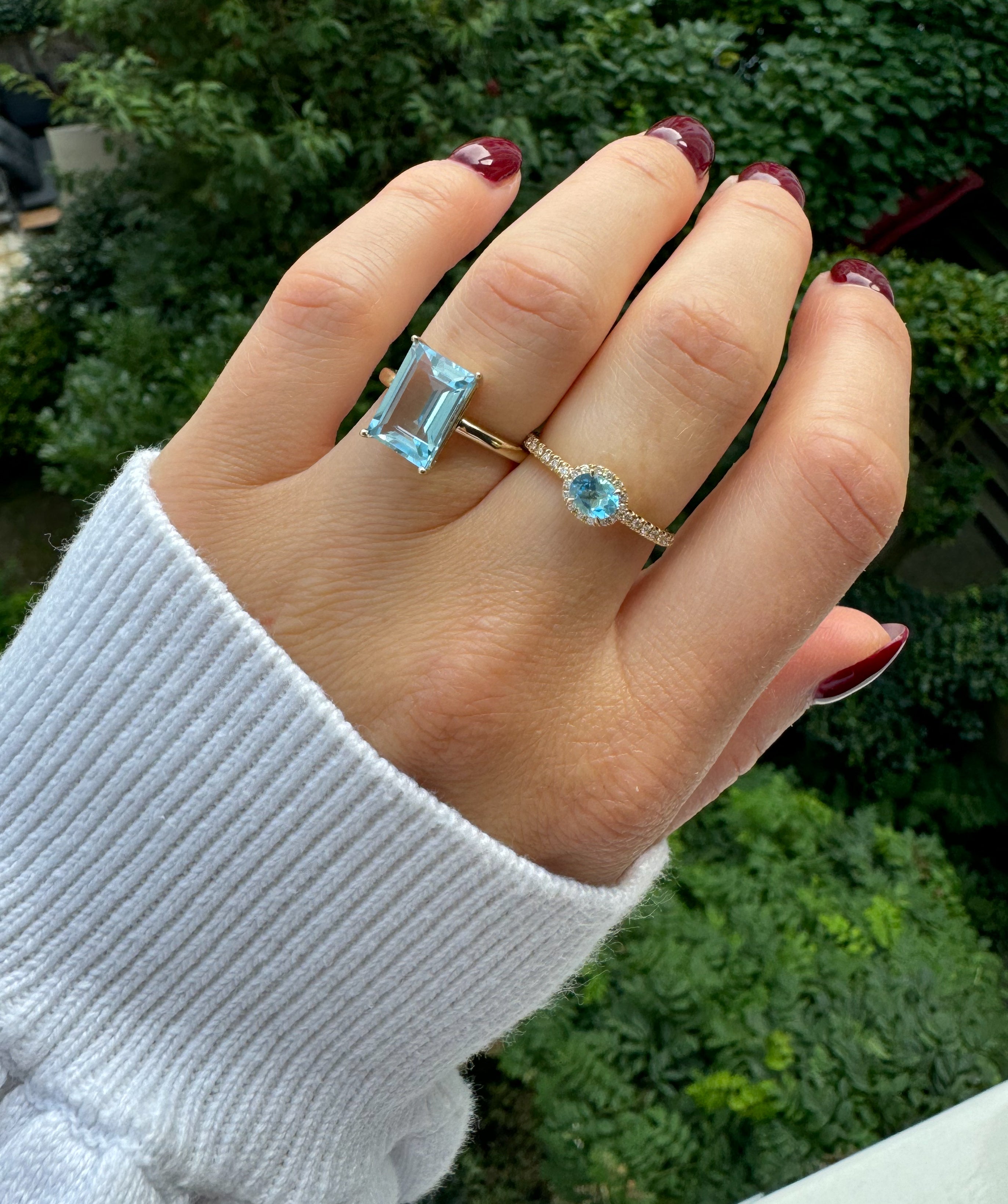 Deze prachtige klassieke ring straalt verfijning en elegantie uit doordat de steen gezet is een een klassieke zetting. De blauwe topaas staat traditioneel bekend als de steen die geluk, voorspoed en liefde bevordert. Of je nu op zoek bent naar een tijdloze ring, een verfijnde verlovingsring of een elegant geschenk aan jezelf, deze ring is absoluut een bijzondere toevoeging aan je juwelencollectie.