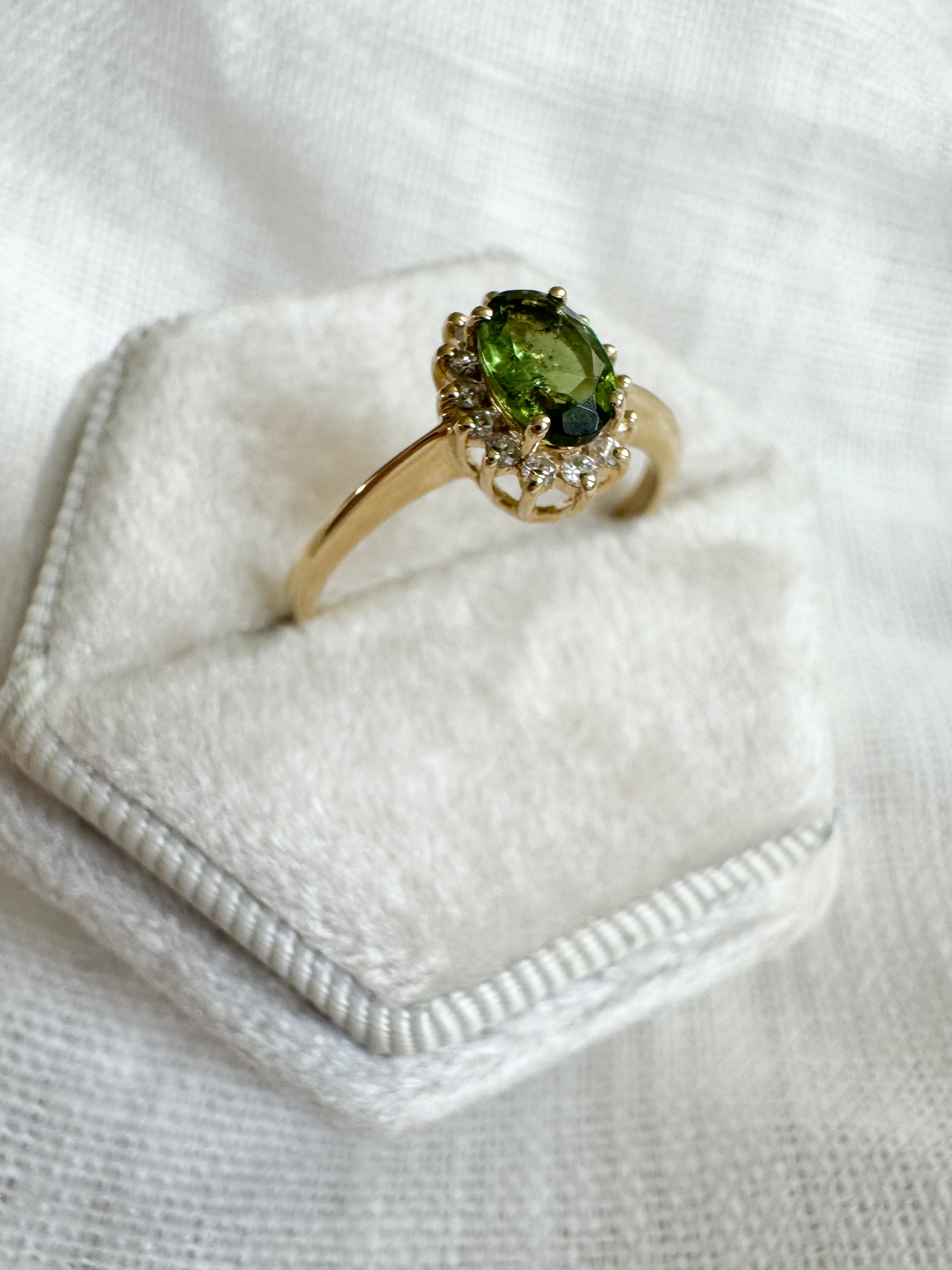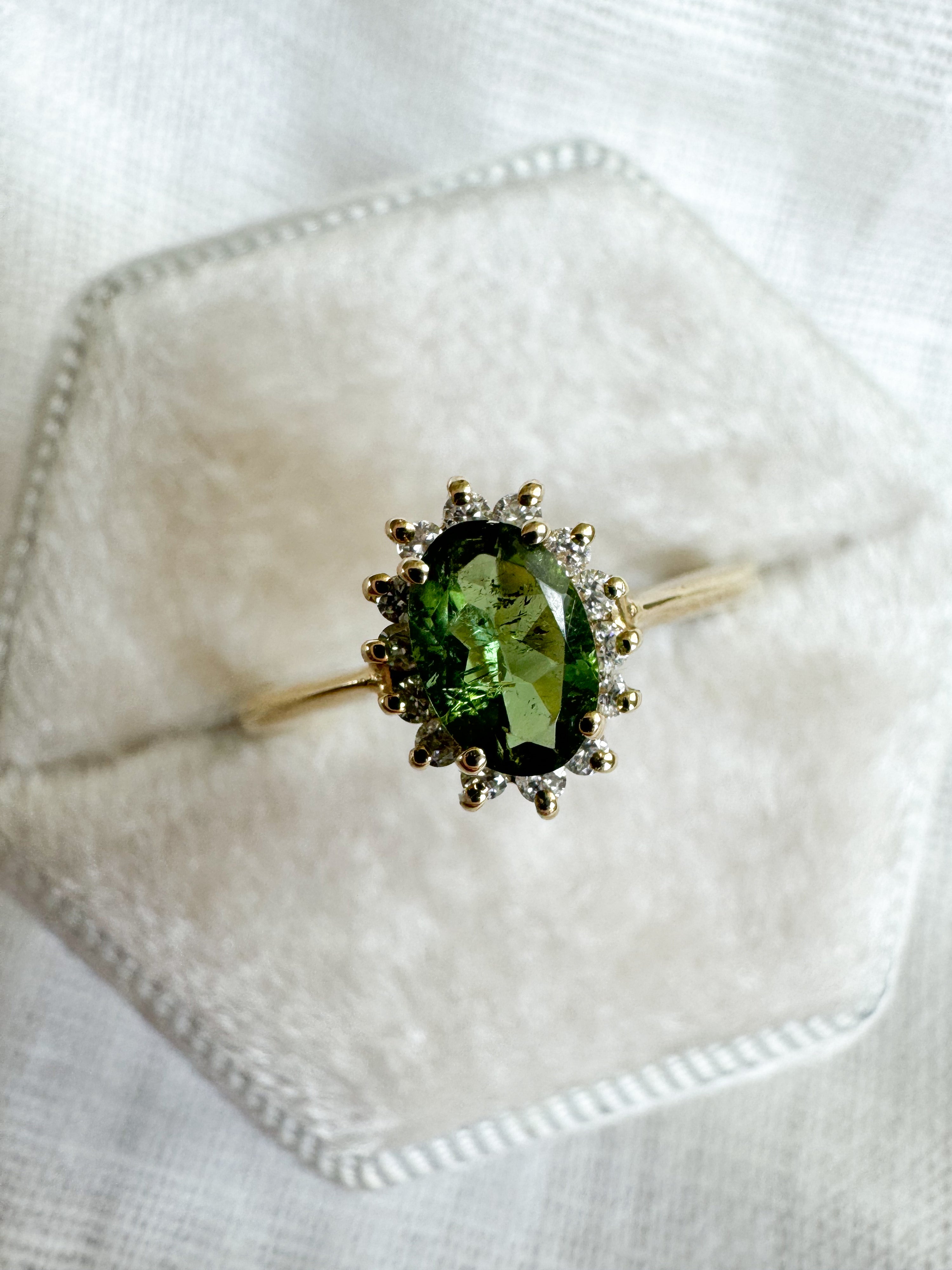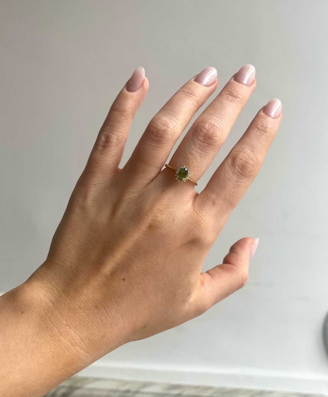 De 'Marise' ring straalt verfijning & elegantie uit met als middelpunt de prachtige lichtgroene toermalijn steen. Deze ring kan gegeven worden bij verschillende bijzondere momenten, zoals verjaardagen, als verlovingsring, als cadeau ter ere van prestaties of natuurlijk als een geschenk aan jezelf. De toermalijn steen symboliseert vernieuwing, liefde, moed en succes, terwijl de diamanten een vleugje elegantie en eeuwige schoonheid toevoegen.