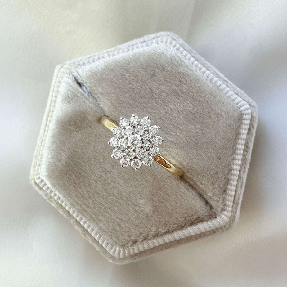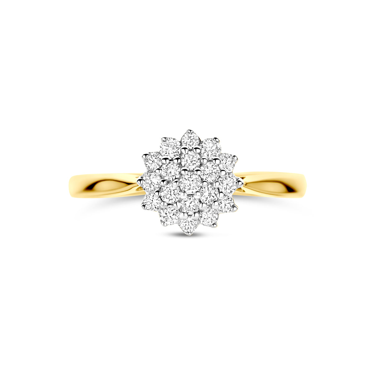 De cluster diamant ring 'Valeria' is een klassiek juweel. De ring is gemaakt van 14 karaat geel goud en schitterende lab diamanten. De diamanten zijn zorgvuldig gezet in een prachtige klassieke cluster zetting. Met de elegante uitstraling is de ring geschikt om te geven bij iedere bijzondere gelegenheid of natuurlijk als een cadeau voor jezelf. Het is een tijdloos sieraad dat jarenlang gedragen kan worden en altijd indruk zal maken.  Een leuk weetje is dat diamanten niet alleen schoonheid uitstralen, maar ook symbool staan voor onvoorwaardelijke liefde en toewijding.